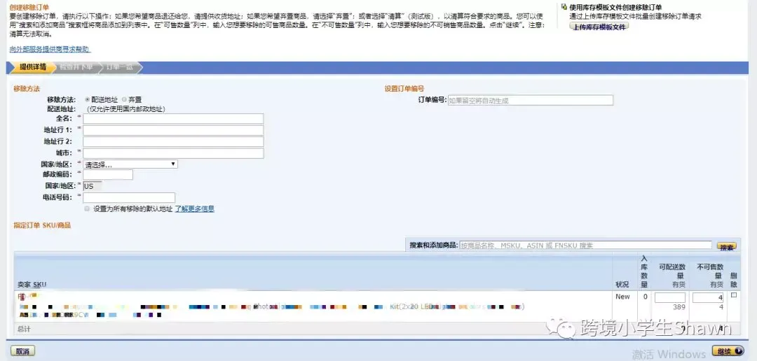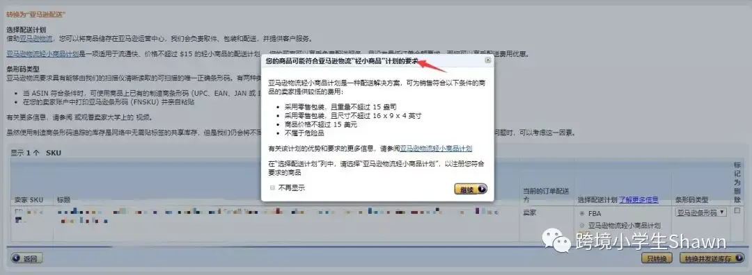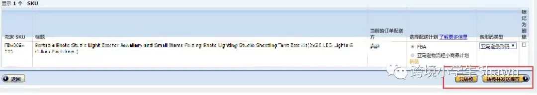 此项针对发送单个产品还是多个产品。如果只有一个产品发送到亚马逊仓库,选择“转换并发送库存”;如需要发多个产品,选择“只转换”,然后多个产品一起做FBA计划。
