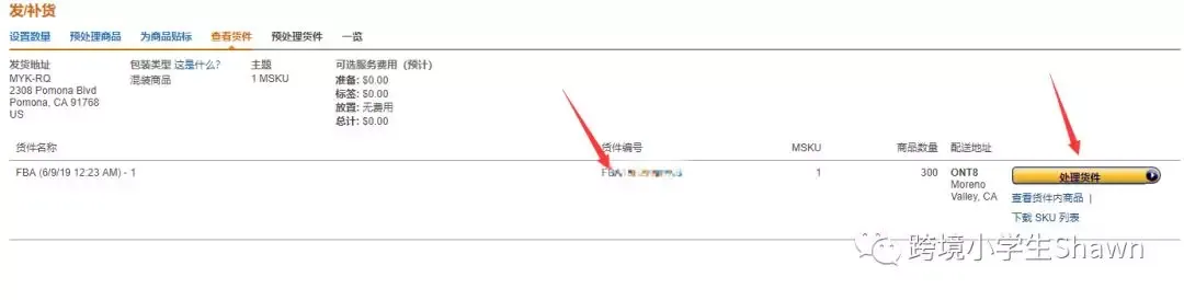货件编号和配送地址是自动生成的,只需点击“处理货件”