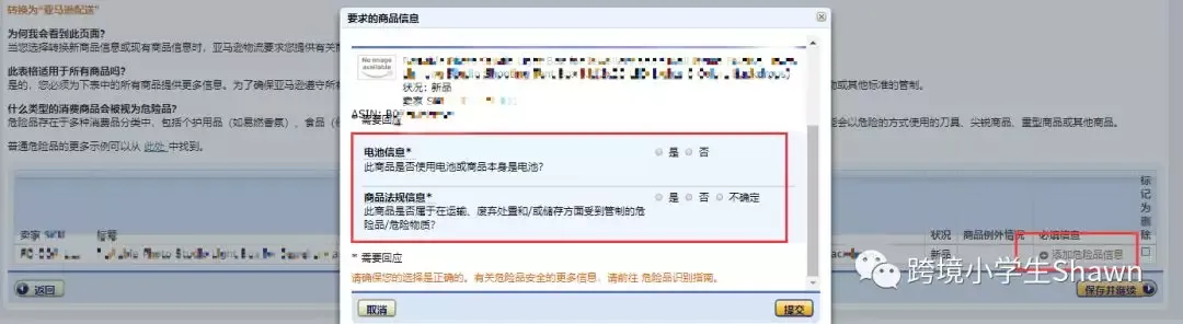 每个产品都必须添加危险品信息,以便让亚马逊了解到产品的真实状况,以及入库所需注意事项。