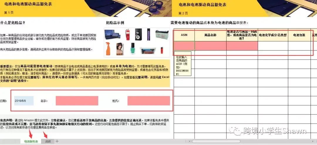 当产品是含电的,需要下载电池豁免表填写相关信息