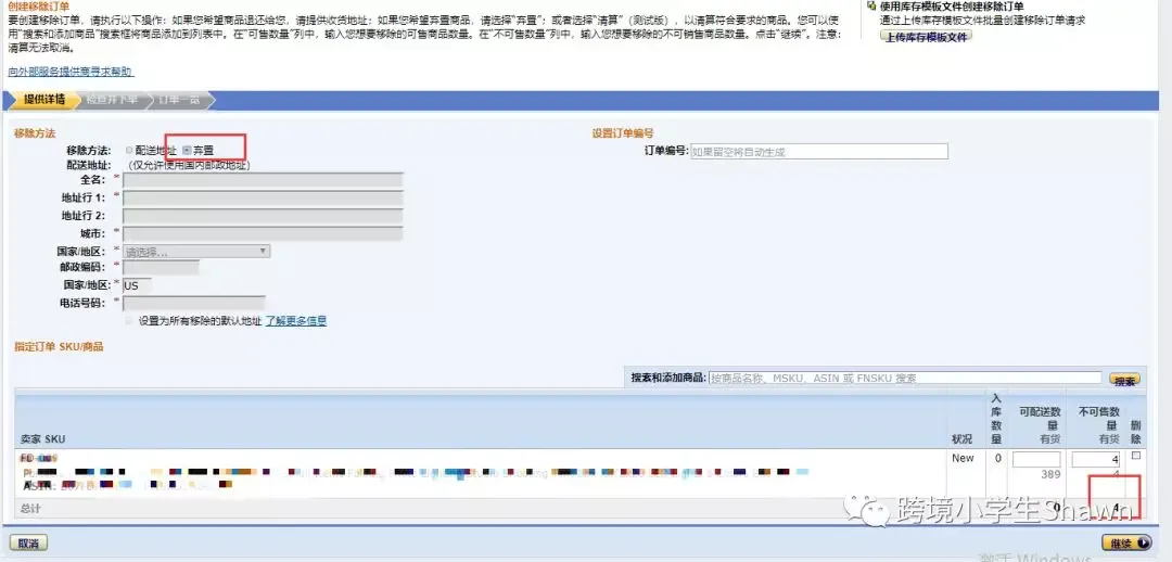 要求亚马逊直接弃置产品,不再需要填入地址。费用为标准尺寸0.15刀/个;大尺寸0.3刀/个