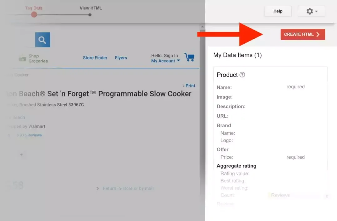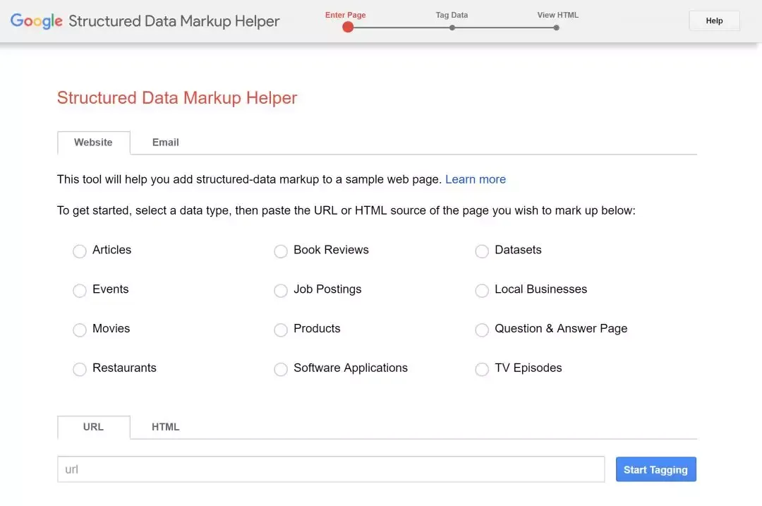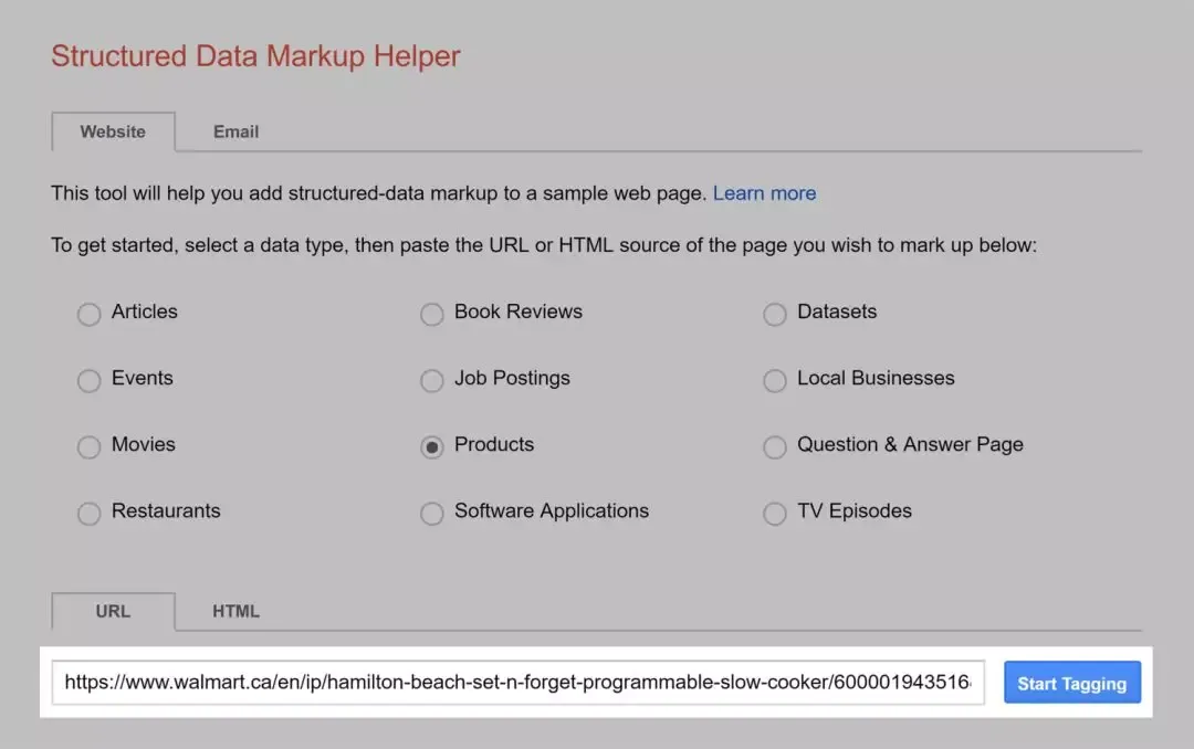 将该产品页面的URL粘贴到URL字段中,然后单击“Start Tagging”。