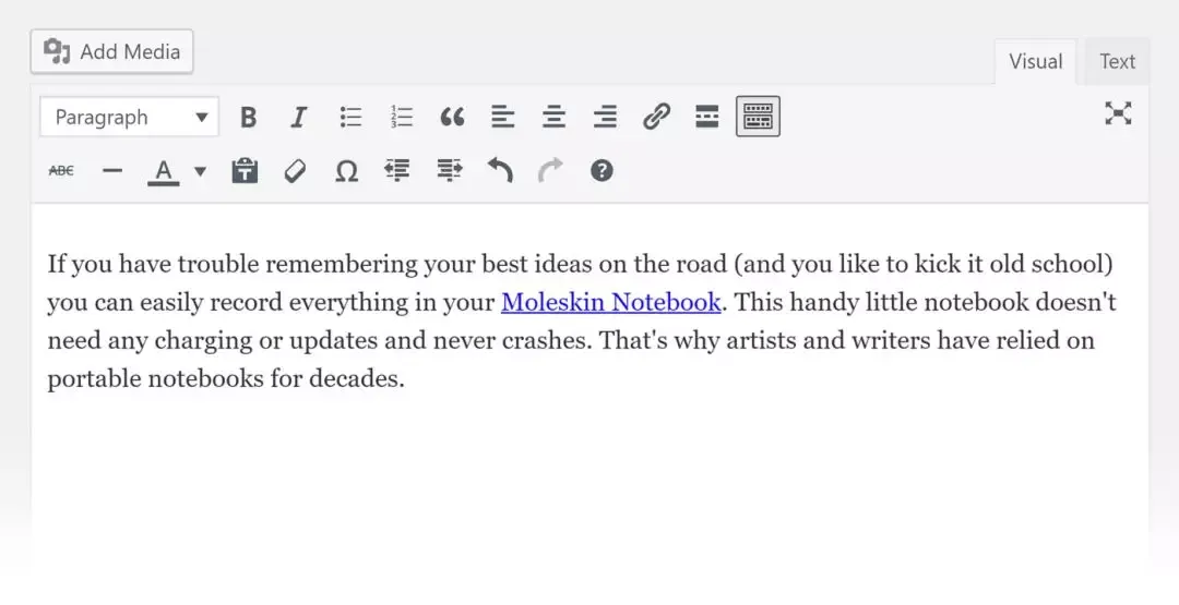 假设你刚刚发布了一篇博客帖子,该帖子有大量反向链接。此外,你还有一个产品页面在Google中排名第5位,关键词是moleskin notebooks。这时你可以在该帖子里添加一个关键字锚文本链接到你的产品页面。