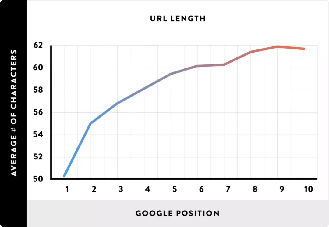 通过对100万Google搜索结果分析发现,网址长度和排名之间存在明显的相关性。具体来说,我们发现短的网址在Google首页上的排名往往高于长网址。