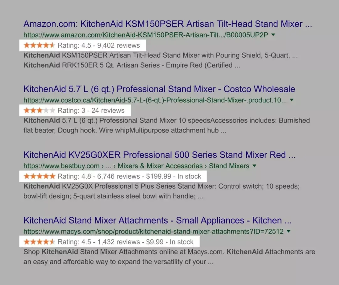 在产品页面上实施架构/数据库标记。 Schema是一种特殊代码,可以让搜索引擎(如Google和Bing)更深入地了解你的网页的内容。