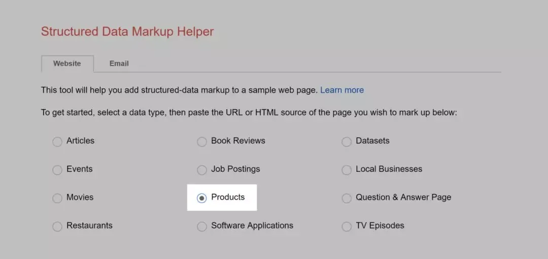 首先,在工具页面选择“Products”: