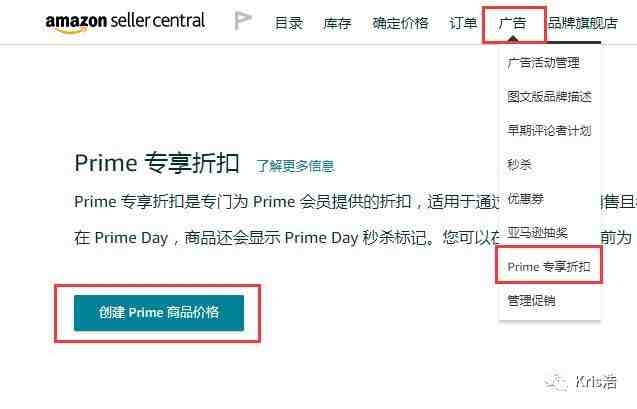 打开prime专享折扣页面,点击“创建prime商品价格”