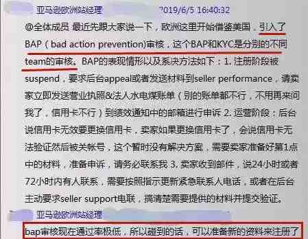 现在欧洲那边的卖家近期遇到的却不是KYC审核,而是一种新的审核:BAP(bad action prevention)。近日,小编看到有卖家发出聊天截图称自己的朋友已经中招了: