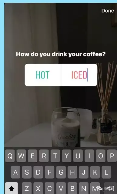 首先,选择你的投票。然后输入一段文字。比如 How do you drink your coffee?