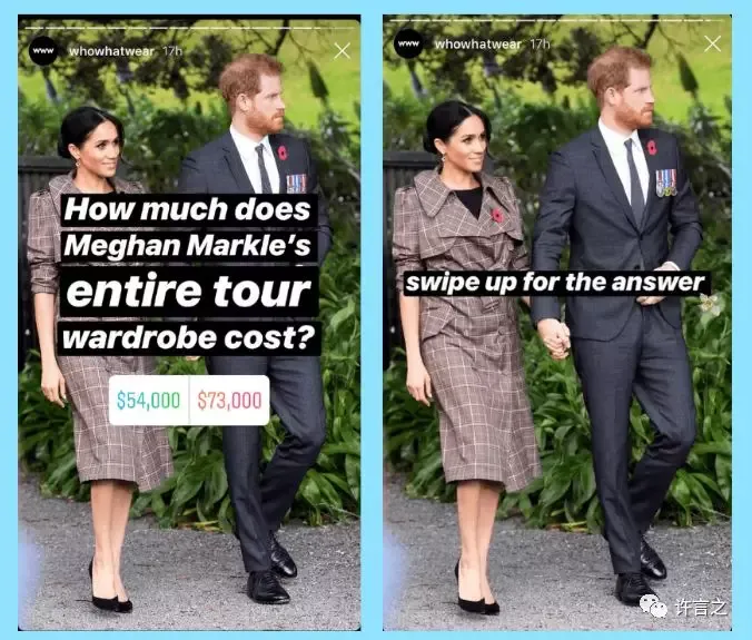 自从那之后,企业一直在寻找新的有创意的方式让用户往上滑他们的Instagram 快拍内容。如果快拍中添加了链接,往上滑就能看到网站链接,吸引用户进入网站。