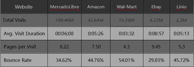 (表格:墨西哥Top5电商平台;数据来源:similarweb)
