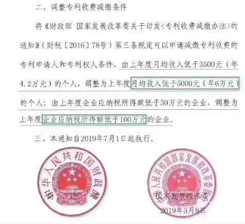 自2019年7月1日,国家财政部针对对专利费用减缴条件进行了了调整,调整如下: