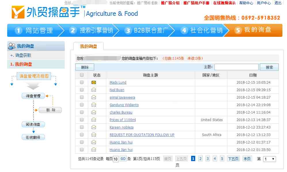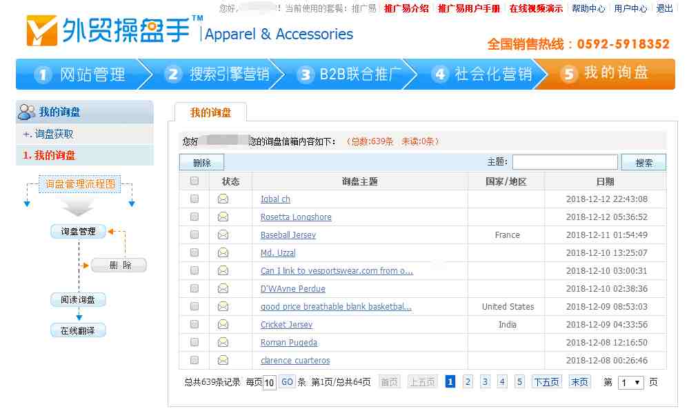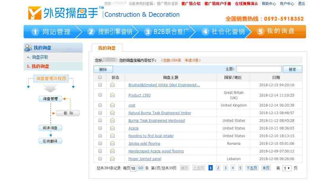 能够坚持不懈的做好以上这些事情,收获是不错的,以下是我们网络推广的收获,机械2年询盘数量1145个,运动服一年600多个、建材一年300多个,以下是后台截图,大家看看。