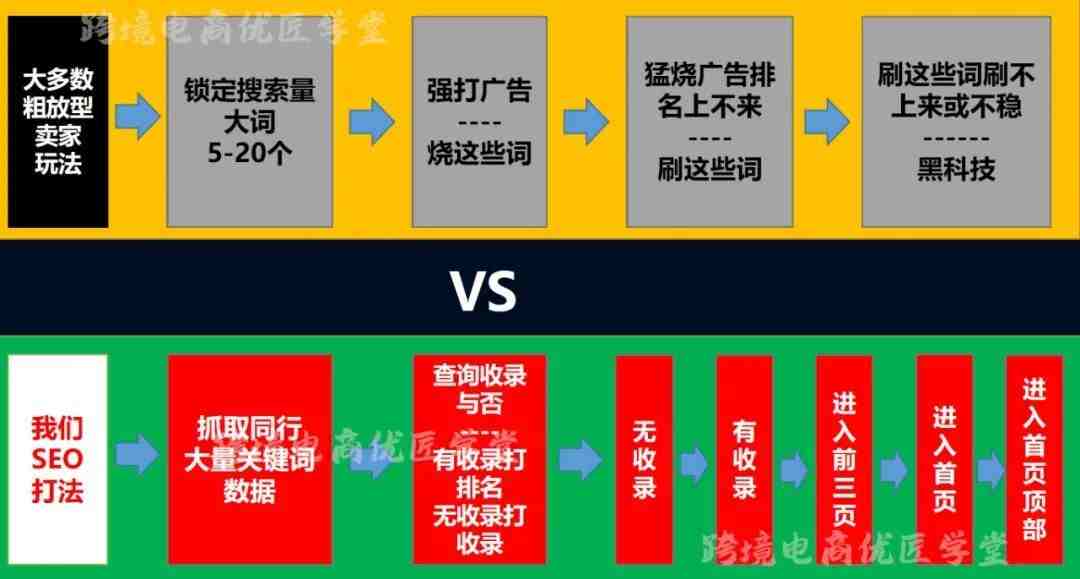 采用A9算法底层规则与SEO技术布局关键词、布局文案,推动Listing海量关键词从收录到自然排名,利用自然流量滚球原理解决高广告成本。