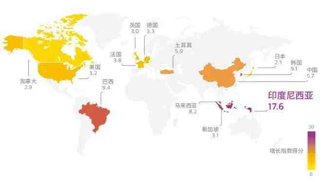 我们看到印度尼西亚是增长最快的市场,另外巴西、韩国和马来西亚增长速度超过了大多数发达国家。
