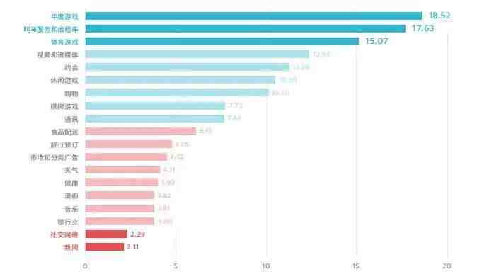 数据显示,中度游戏安装数量在所有应用中居首位,特别是大逃杀以及 MOBA 类游戏越来越受欢迎,另外共享、叫车服务也有大幅流量增长。值得一提的是,体育游戏成为去年的增长迅速的类型。