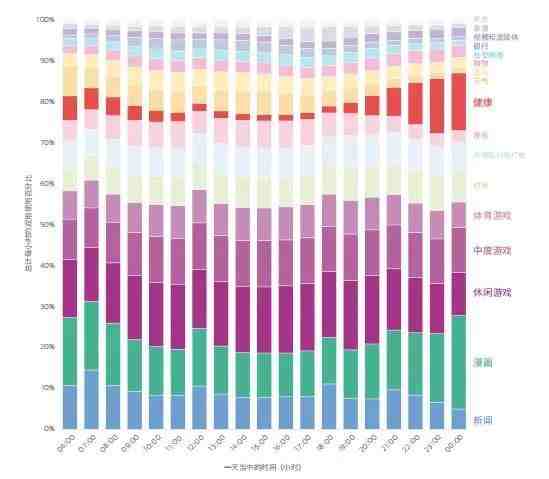 以全球应用一天内使用情况来看,漫画、中度游戏和休闲游戏最为活跃。
