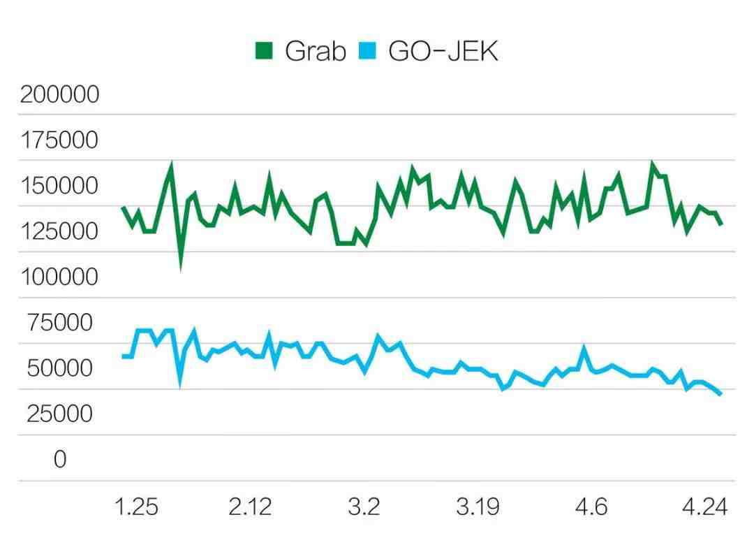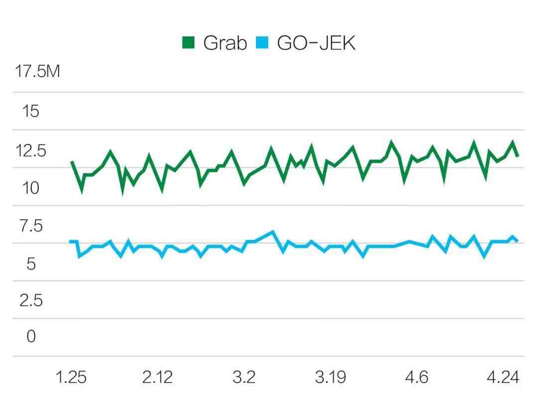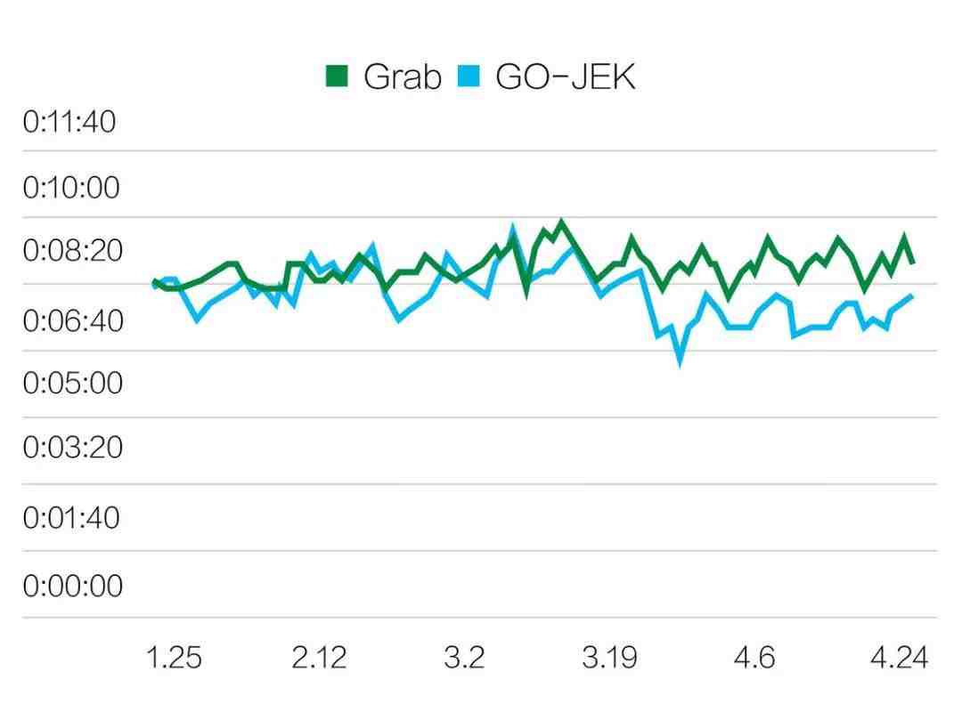 图:Grab与Go-Jek用户平均使用时长(Avg Time/User)对比