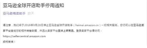 此前亚马逊官方曾发布关闭海卖助手的通知
