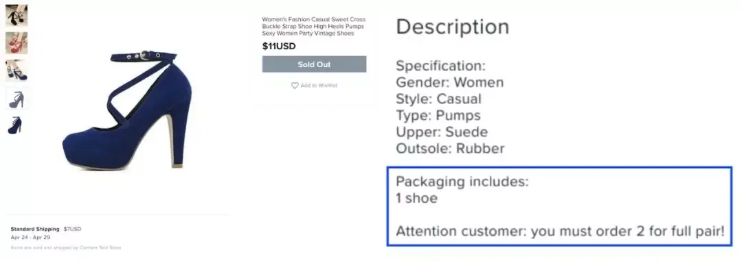 <卖鞋卖一只,还把关键信息隐藏在产品说明的最下方,你敢信吗?>