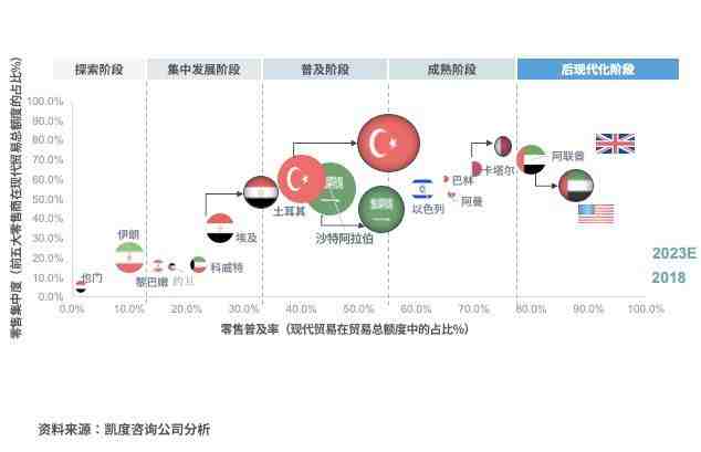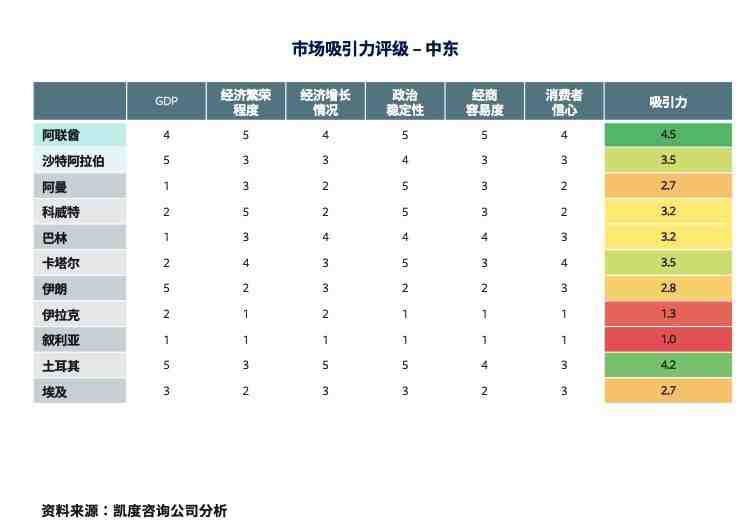 中东地区包含多个市场,且这些市场在经济繁荣程度、消费者需求、数字化普及率和零售结构及市场成熟度等方面均各不相同,例如阿联酋、卡塔尔和巴林的发展程度远高于伊朗和埃及。其次,中东地区各市场未来的发展速度及方向亦各不相同,其中阿联酋、沙特阿拉伯、土耳其及埃及等市场更具价值。