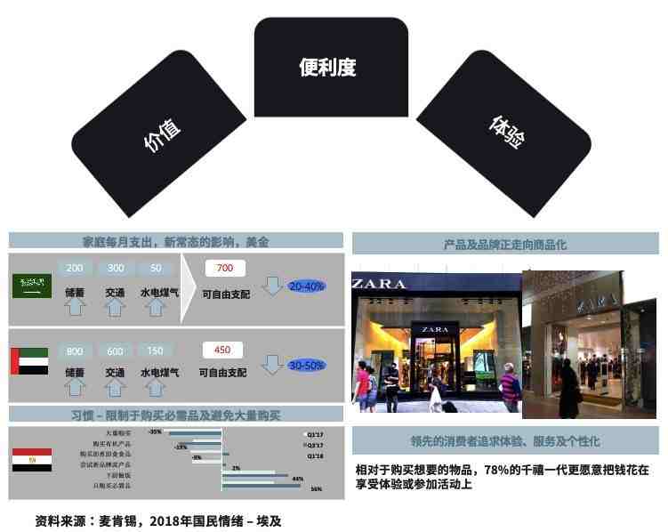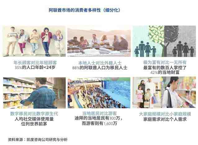 从消费者多样性方面来看,中东地区消费者的概况、其对购物及电商的看法,以及在购物旅程中所关注的方面均存在差异。即使放眼同一个市场,中东消费者仍呈现多样化,如迪拜富豪追求体验式零售服务而蓝领工人需要的是实用性购物体验。所以,品牌"一刀切"的策略在中东地区是不可能取得成功的。