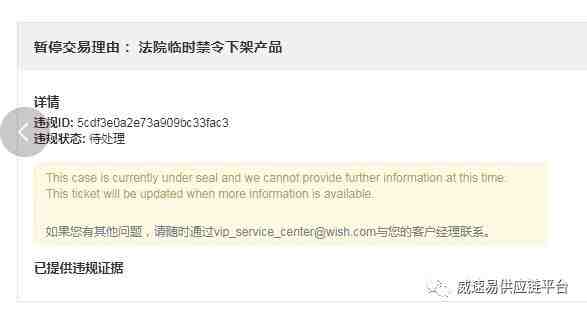最近两天,很多Wish卖家莫名接到一封平台发来的电子邮件,内容显示店铺出现了违规行为导致账号被封,法院临时禁令下架产品。