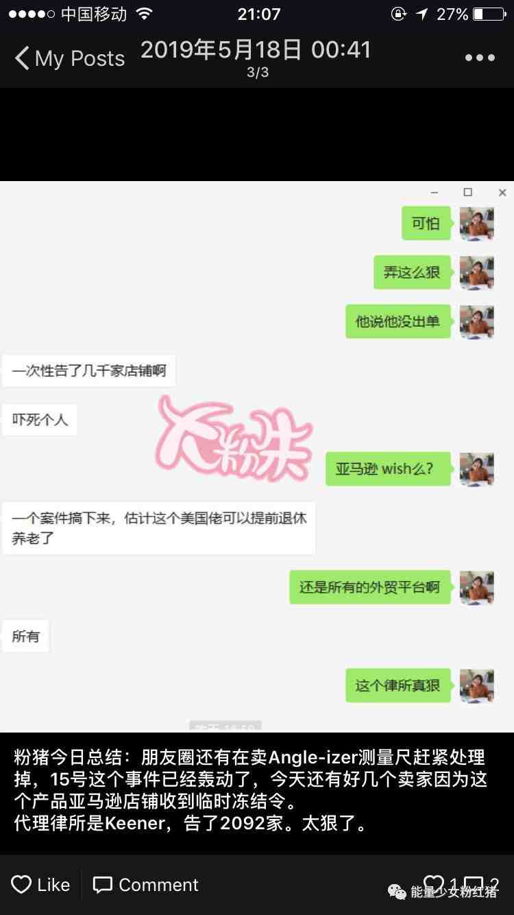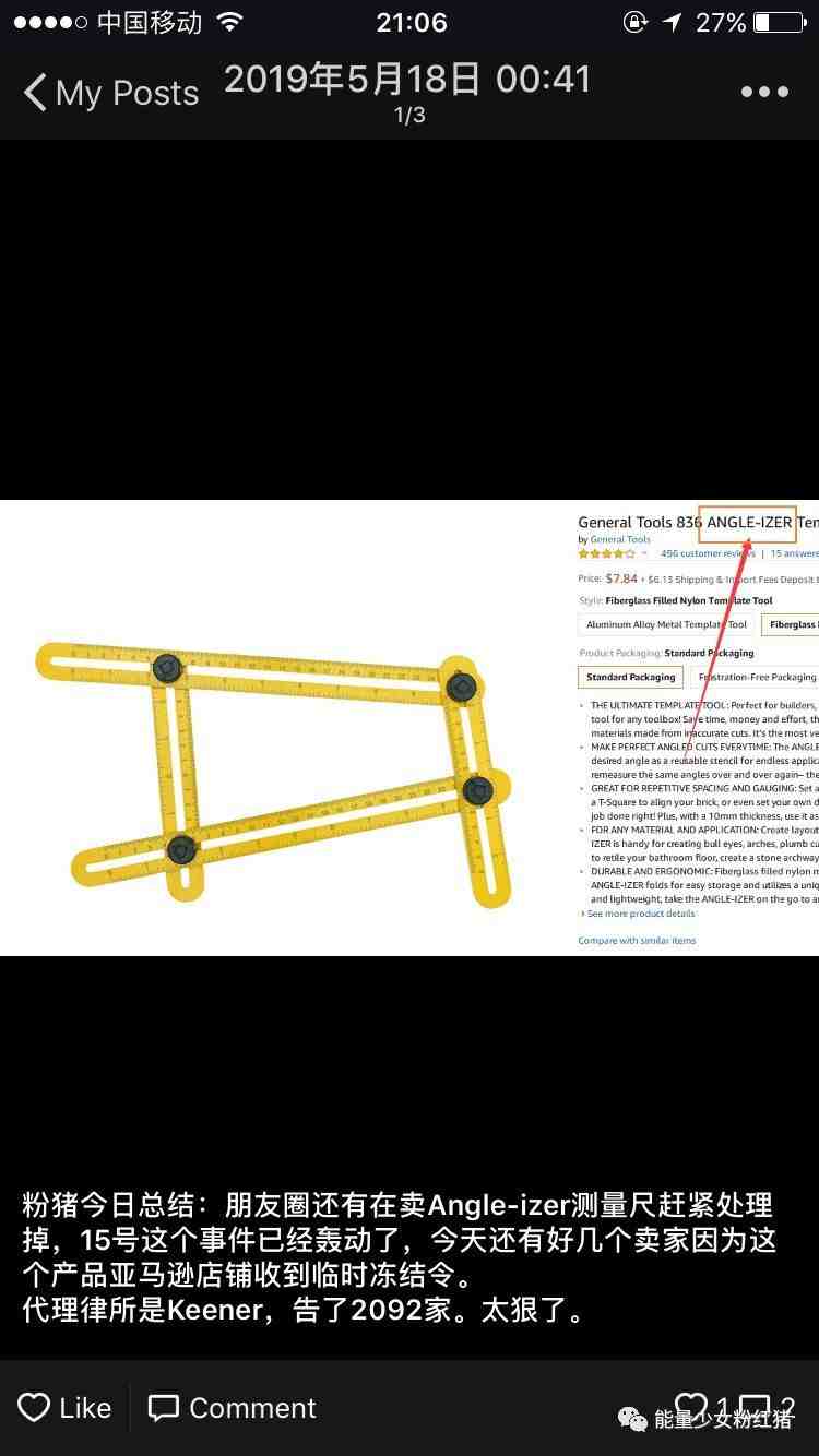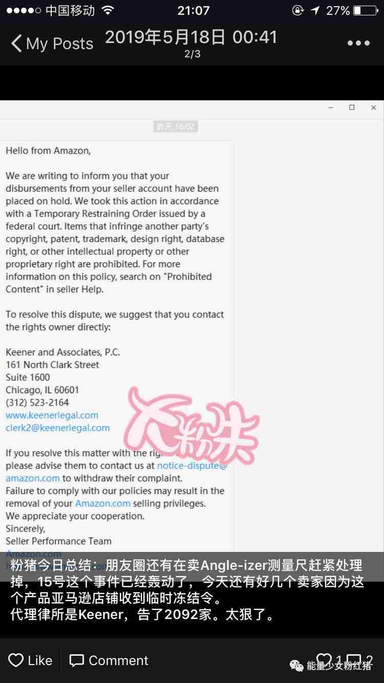 5月18粉朱在朋友圈有提醒大家注意一款尺子会导致大家的款项被冻结,让大家赶紧处理。
