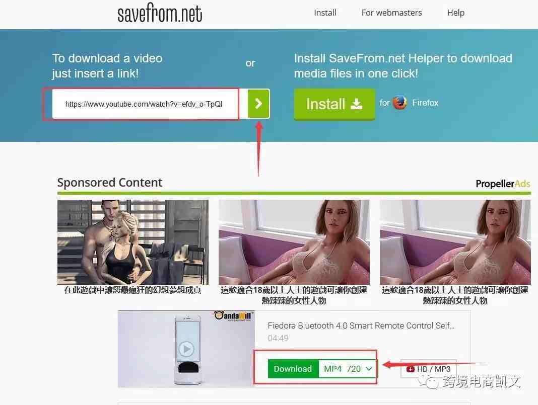 STEP 3 打开网址 https://en.savefrom.net ,把复制的视频网址粘贴到搜索框,点击Download就可以下载了。
