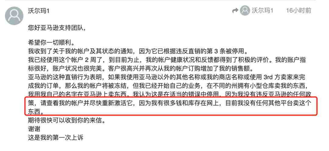 最后就是他的POA,写得没有任何意义!亚马逊让他提交的任何证明,他都没有提交,只是单单的告诉亚马逊,赶快恢复他的店铺!一封完整的行动计划必须包括三部分:①导致店铺被封的原因②犯本次错误将采取什么措施③后期将付出什么行动来避免此类错误的再次发生。