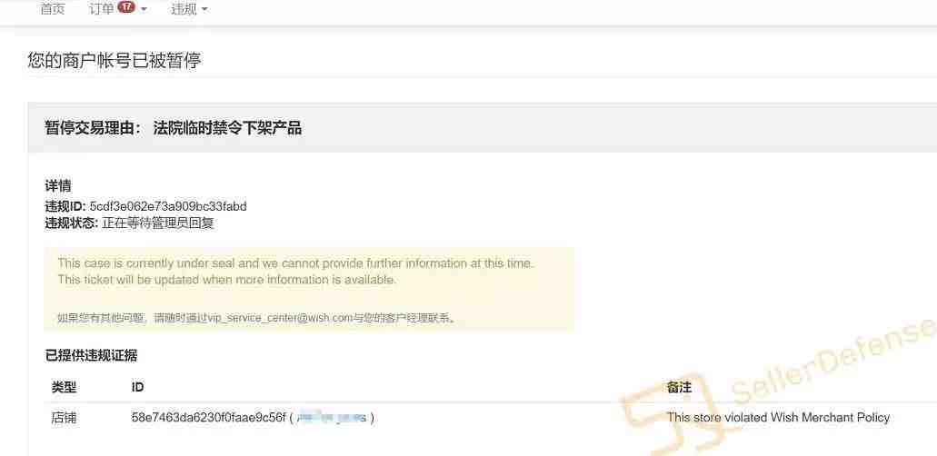 今天有Wish卖家反馈店铺被封号了!以下是卖家发来的截图: