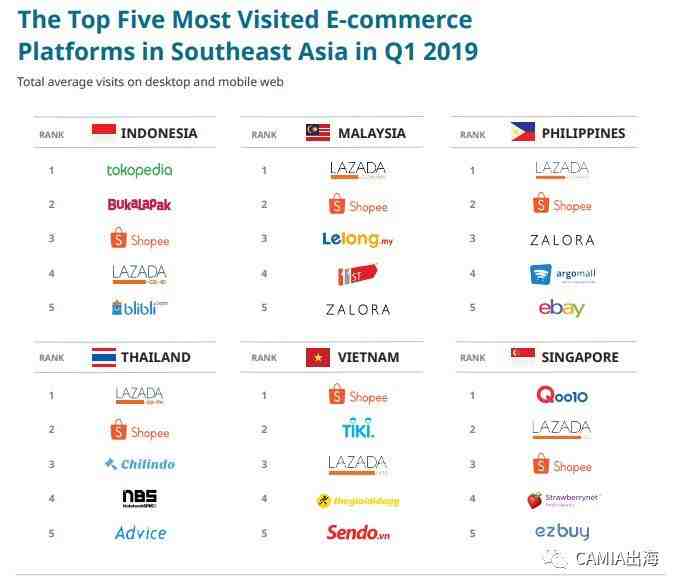 2019年Q1东南亚最受欢迎的五大电子商务平台
