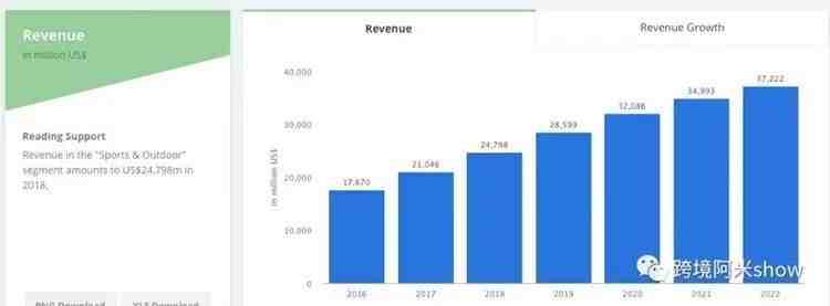 首先来看几张来自外媒智库关于运动户外商品销售收入的图文数据:
