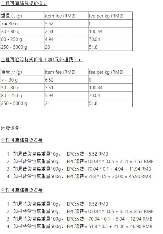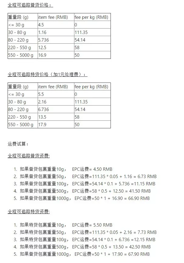 2. EPC英国路向新物流价格表(北京时间2019年5月10日早6时起生效):