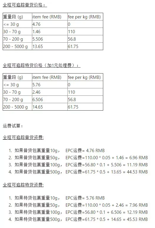 相比于旧的价格,新的EPC物流价格(美国路向、英国路向、法国路向)在较高重量段的价格都有所下调。看来平台是鼓励大家方发展高重量段的商品业务啦!
