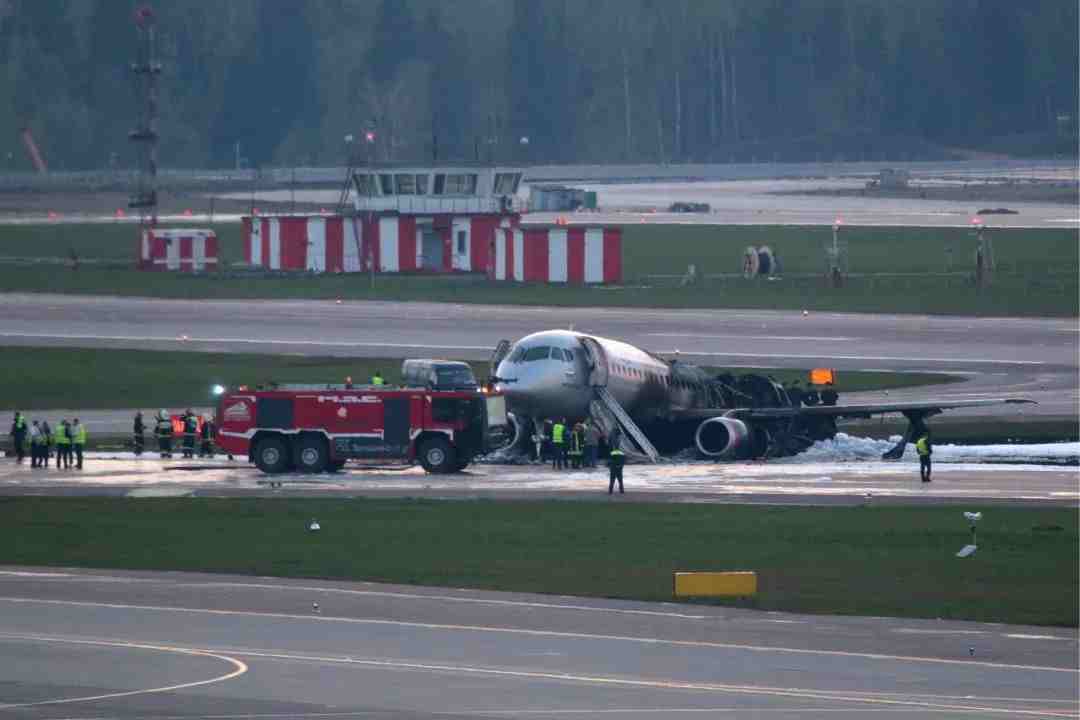 据报道,这架苏霍伊超级100型客机当地时间5日17点50分从莫斯科谢列梅捷沃机场起飞,前往俄罗斯西北部城市摩尔曼斯克,机上共有78人,包括73名乘客和5名机组人员。飞机刚起飞后不久就起火,飞行员向机场地面空管人员请求迫降。飞机于18点40分左右迫降在机场跑道上。