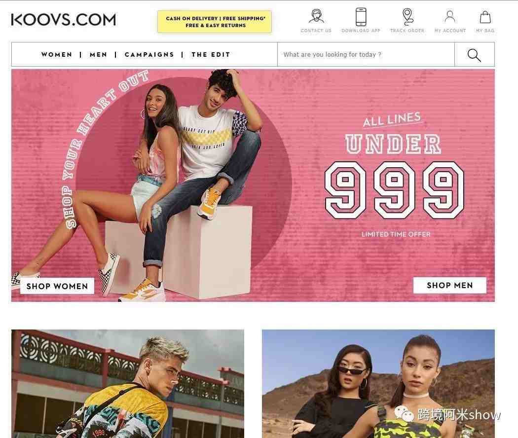 Koovs是一个印度线上服装和配饰品牌,销售各种高端品牌产品,比如New Look、耐克和李维斯。官网设计精良,易于使用。但真正让Koovs与众不同的是其COD(货到付现)政策。允许购物者收到包裹后再付款,能加深信任,提高客户转化率。