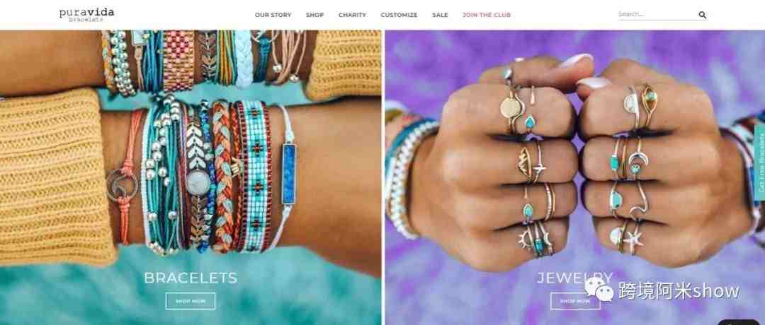 Pura Vida是一个手工艺品品牌,网站导航简洁,产品展示非常吸引人。Pura Vida每一条手链都是由全球艺术家们手工制作,极具创意。该品牌推行网红项目,积累了11万小网红,推荐销售额提升了300%。