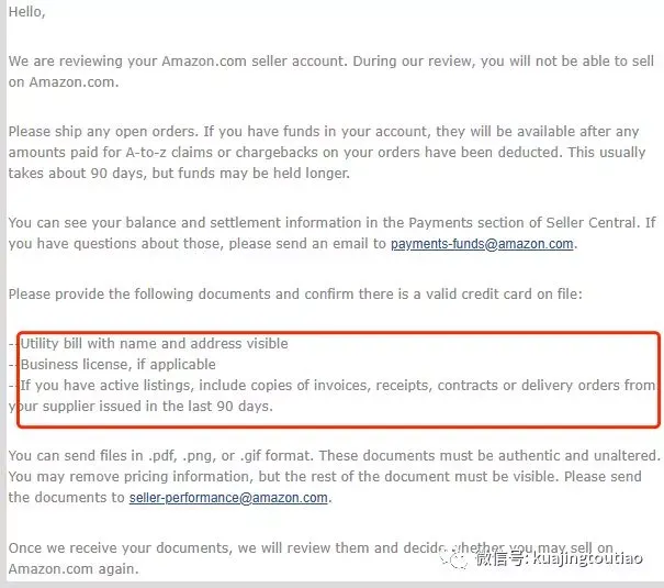 目前我有收到亚马逊招商经理内部通知,3月27日开始,亚马逊二审不再喜欢信用卡账单,而是更加喜欢公共事业单位账单,如水费,电费,煤气,电话费,上网费用账单,目前很多地区已经取消了电费和水费的通知单,均只有发票,但是我可以很明确的告诉你,用发票去提交二审百分百以失败告终。