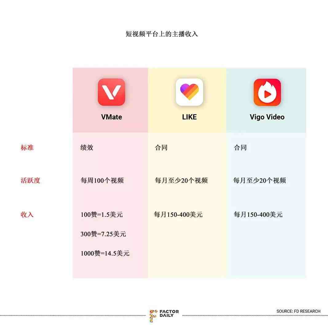 据传闻,去年主播们收入锐减。去年七月之前,中国互联网巨头阿里巴巴旗下小视频 App VMATE 每条视频付给主播300卢比(约4美元),到了八月份,该平台出台了新规则,按照视频点赞量付钱。快手背靠腾讯,推出小视频 App Kwai(海外版快手),过去每条视频付给主播500卢比(约7美元),然而自从 TikTok 主导市场之后,快手便停止了在印度的宣传。