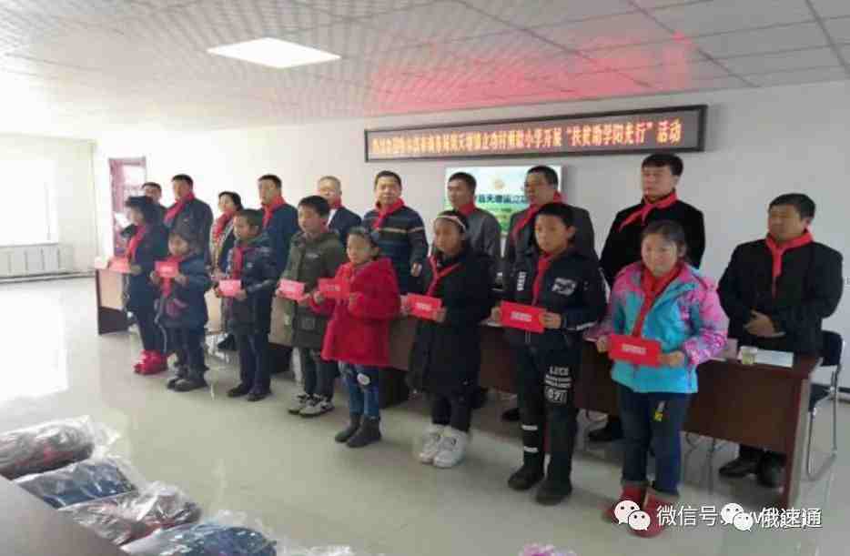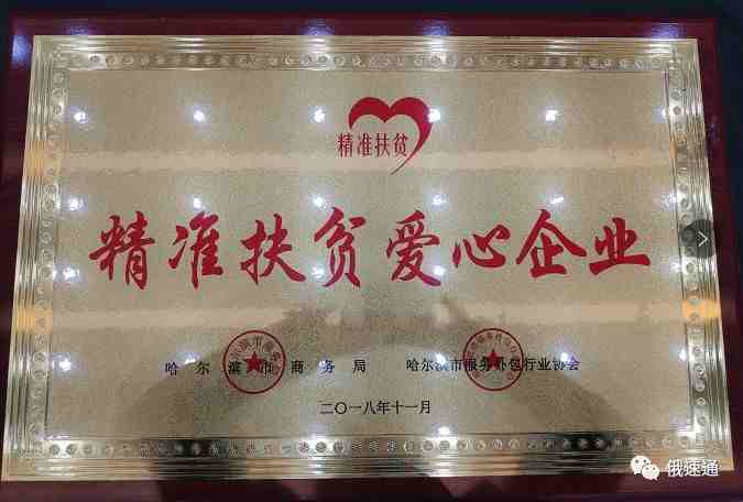 活动期间,俄速通上下积极响应,为对口帮扶对象巴彦县天增镇立功村捐款捐物,为立功村贫困小学生送去善款及学习用品。俄速通也因此获得了哈尔滨市商务局、哈尔滨市服务外包协会颁发的“精准扶贫爱心企业”荣誉证书。