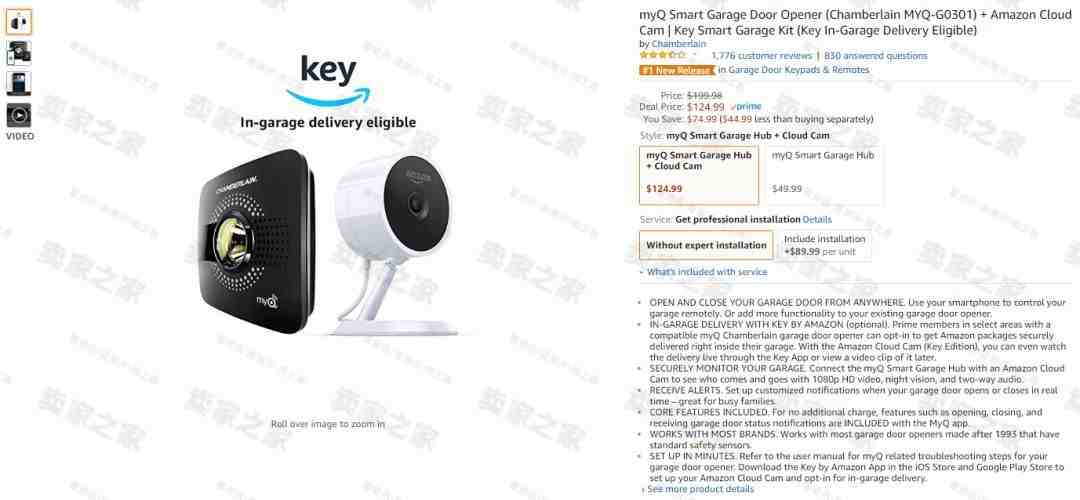 首先,买家必须订阅Amazon Prime才能使用该服务;其次,买家需要一个来自Chamberlain或LiftMaster的兼容myQ的车库门开启器。亚马逊在其网站上提供了这些工具,目前售价为如下图: