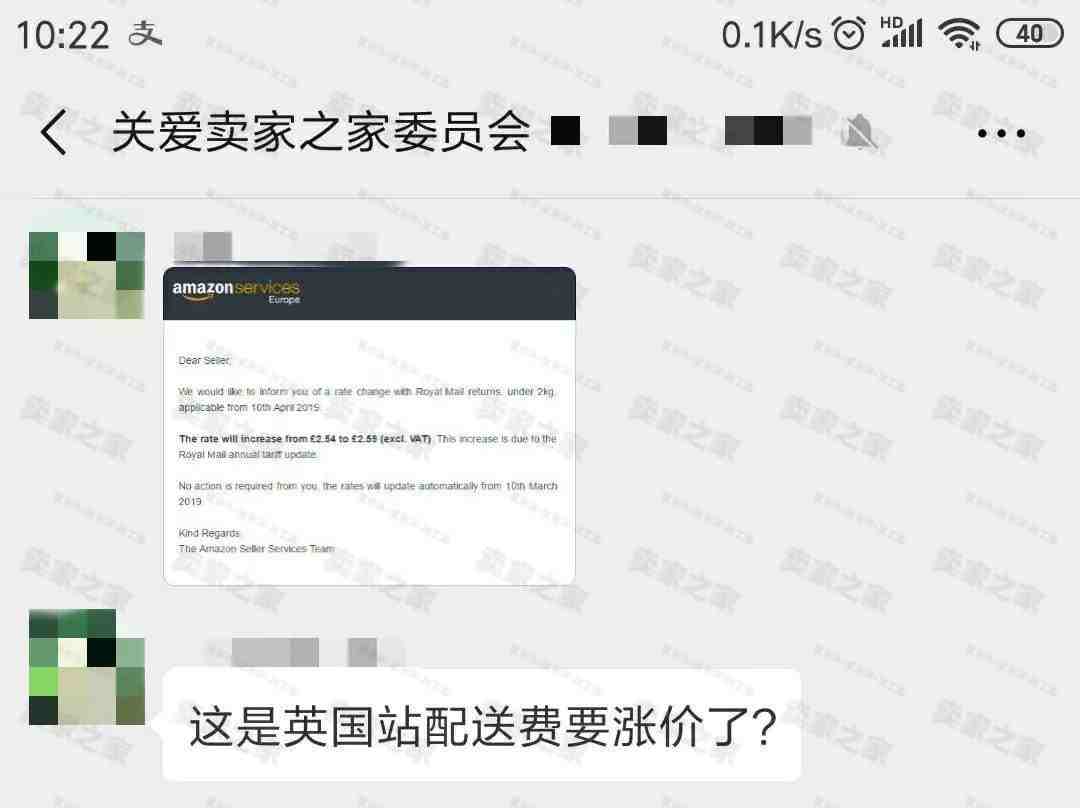 本月早些时候,小编就注意到,有卖家在卖家之家交流群内反馈自己收到了亚马逊特别的邮件,该邮件是关于英国皇家邮政的退税率的费用调整。