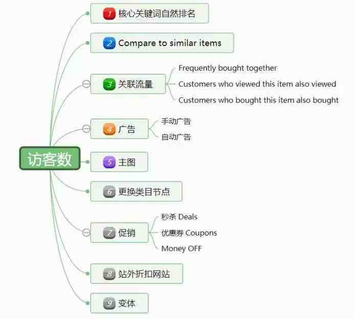 都知道亚马逊是运用A9算法来确定搜索排名,影响A9最大因素就是产品的转化率,而产品的转化率又是由产品的销售额和销量做决定性影响,根据:销售额 = 客单价 x 访客数 x 转化率来思考优化顺序,我们就可以从转化率和流量两点来进行着重优化。