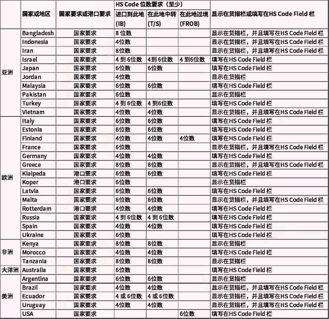 近年来,各国进口海关纷纷要求在进口的货物提单的信息中显示HS CODE的信息。在此我们为您汇总了到目前为止我们所收集到的各国对HS CODE的要求。
