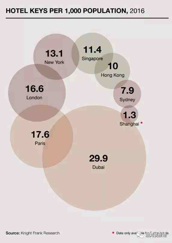 根据莱坊国际(Knight Frank)的《2018全球枢纽报告》(The Hub Report 2018),迪拜每千人酒店钥匙数达到29.9(仅计算5星级酒店),远高于其他旅游城市。