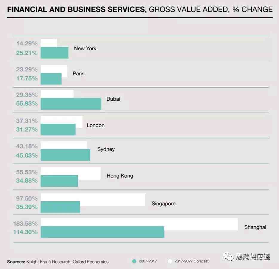 根据莱坊国际(Knight Frank)的《2018全球枢纽报告》(The Hub Report 2018),2007-2017年,迪拜金融和商业服务部门增长率达55.6%,全球范围内仅次于上海(114.3%)。
