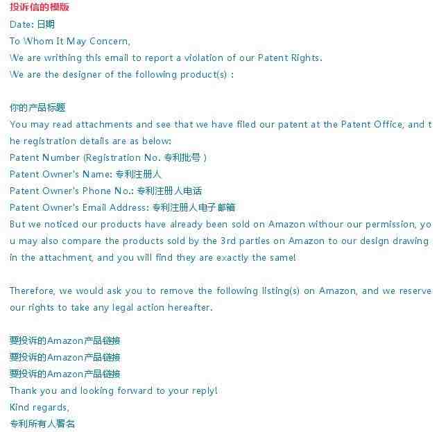 如果你已经向Amazon市场所在国家/地区的知识产权注册属递交了专利申请,拿到专利申请证书后,你将可以开始对在Amazon销售你同样商品的卖家提起投诉。