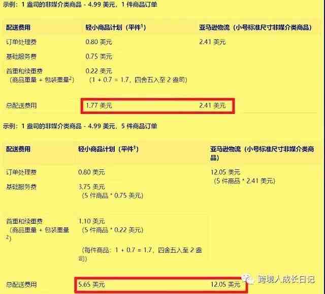 FBA轻小计划收费详情,如图: