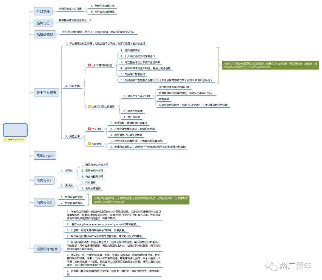 下图是2017年秋关于音乐短视频的思考框架,现在看来,当时的思考还是有较大的认知缺陷,主要是对品类的理解上不够深刻。不过这个框架还算是完整,有可读之处。